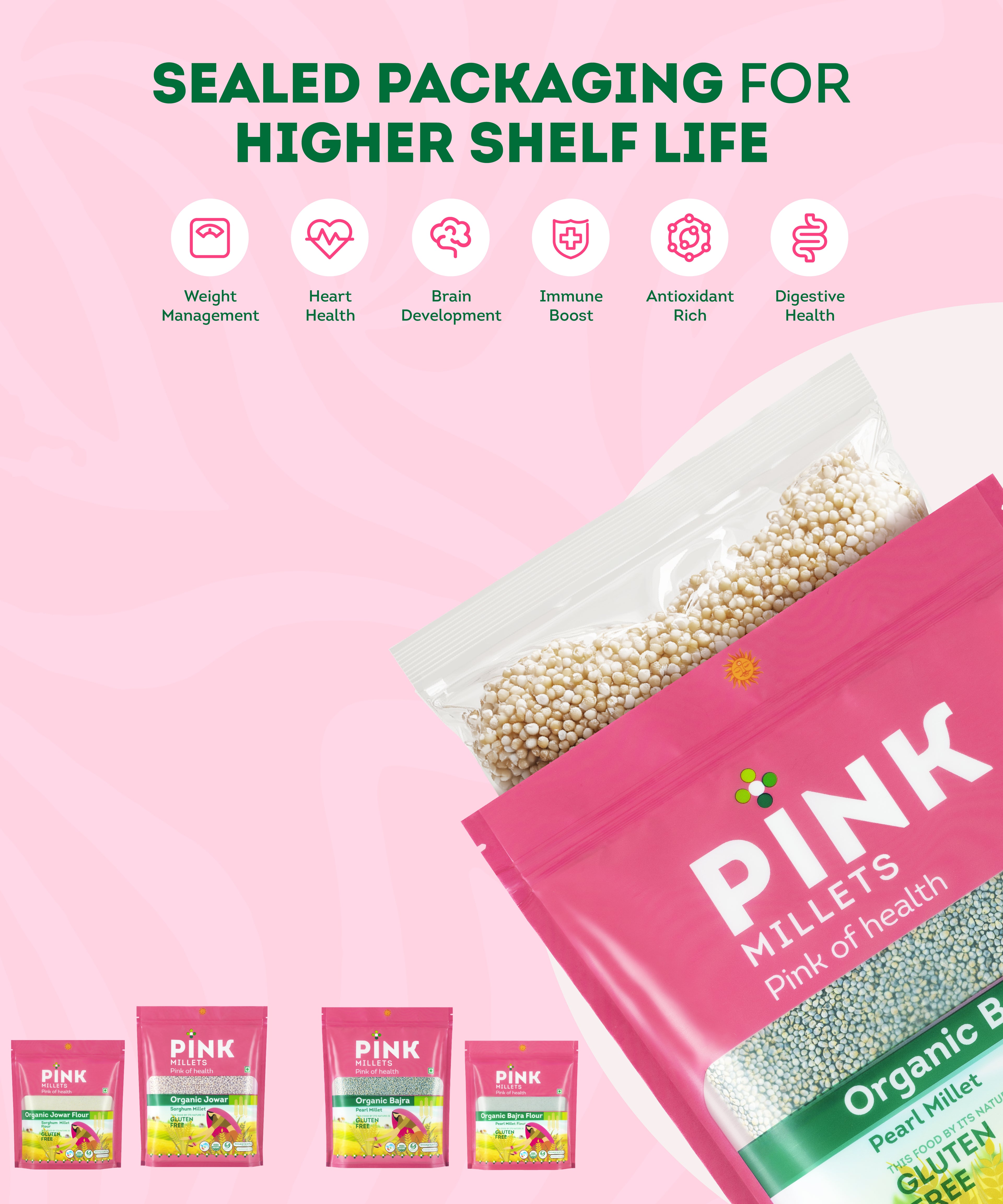 Switching to raw bajra was one of the best decisions for my diet. It’s great for my heart and helps keep my energy levels steady throughout the day. Pink Millets on the go!