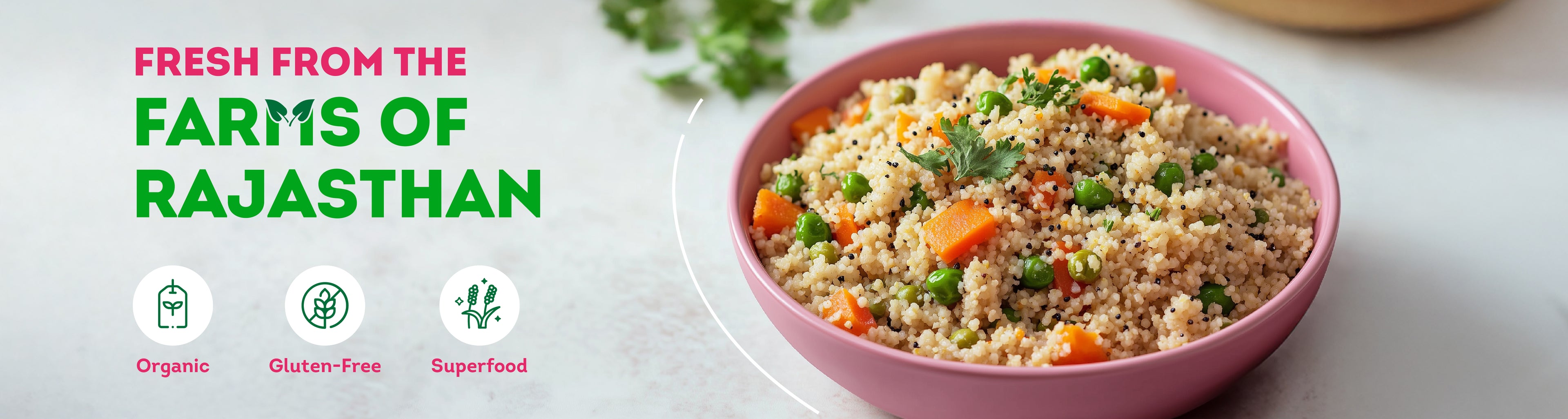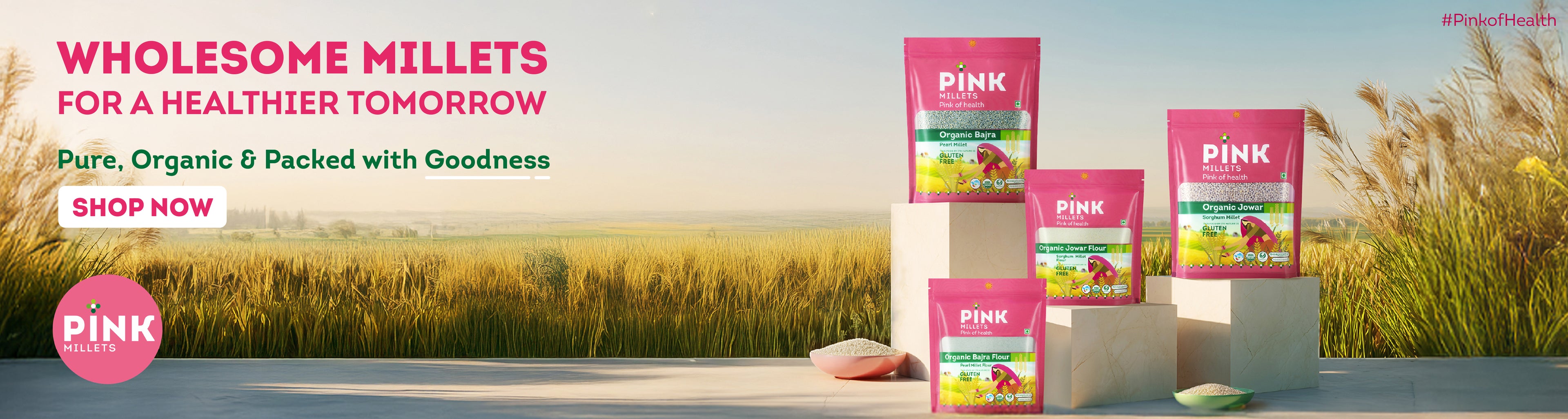 Pink Millets blends tasty organic millets with a dedication to sustainability. We collaborate with environmentally aware farmers who implement sustainable practices and value recyclable packaging.