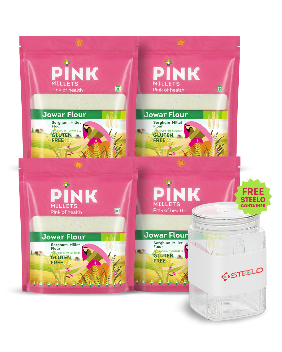 Jowar Flour - Combo Pack of 4 with Free 750ML Steelo Jar