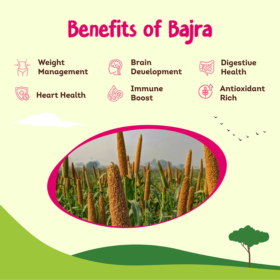 Nutrient-Dense: Bajra is rich in essential nutrients like iron, magnesium, and phosphorus, supporting overall health and vitality.