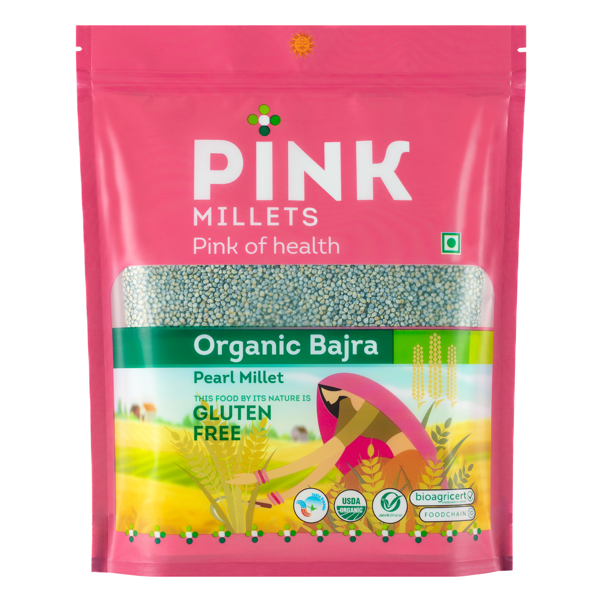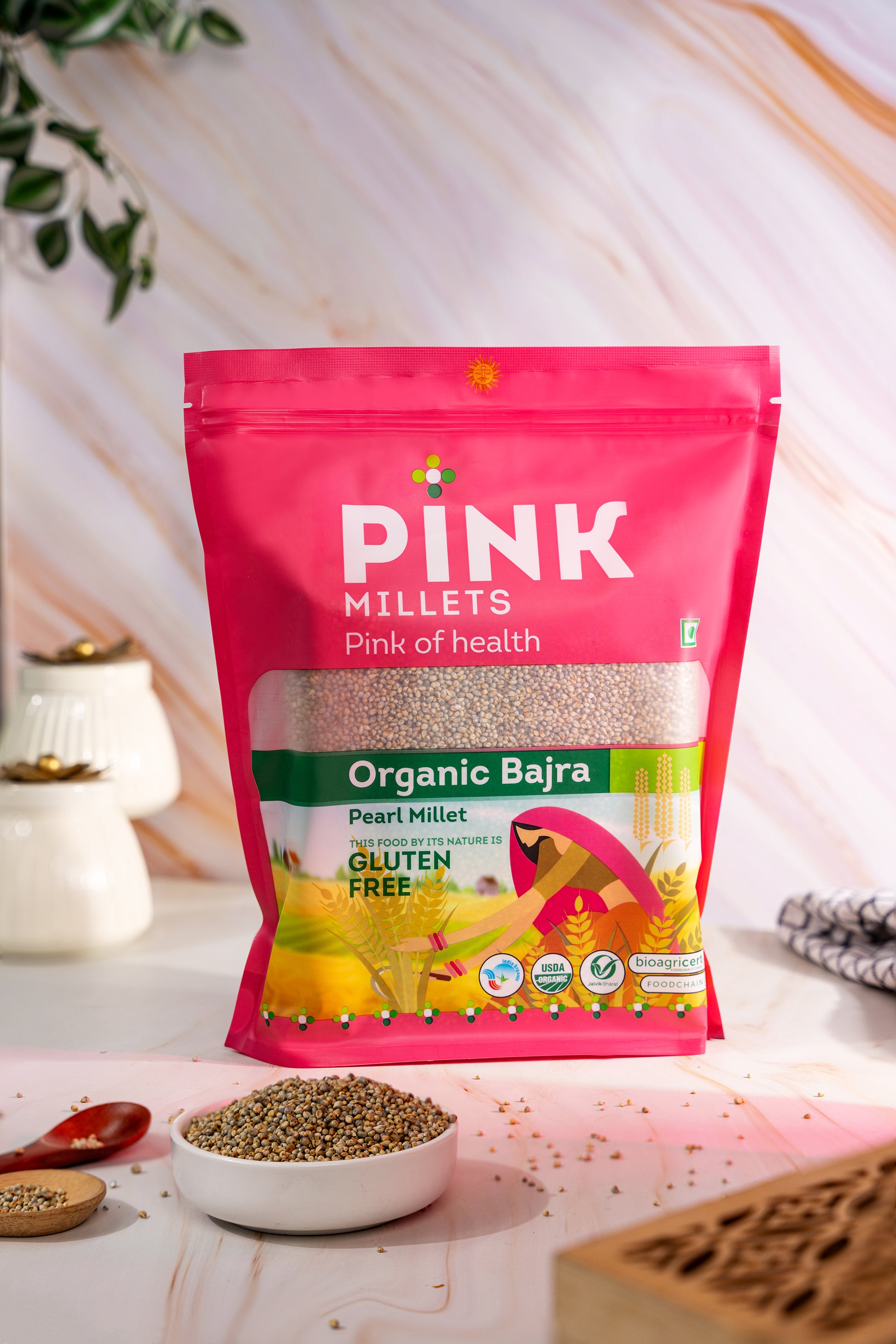 A resealable package of organic bajra, ensuring freshness and convenience.